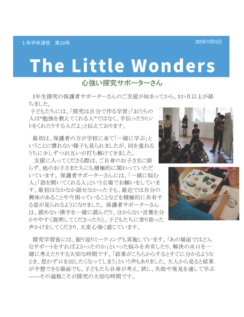 1年生学年通信 The Little Wonders No. 28 〜心強い探究サポーターさん〜