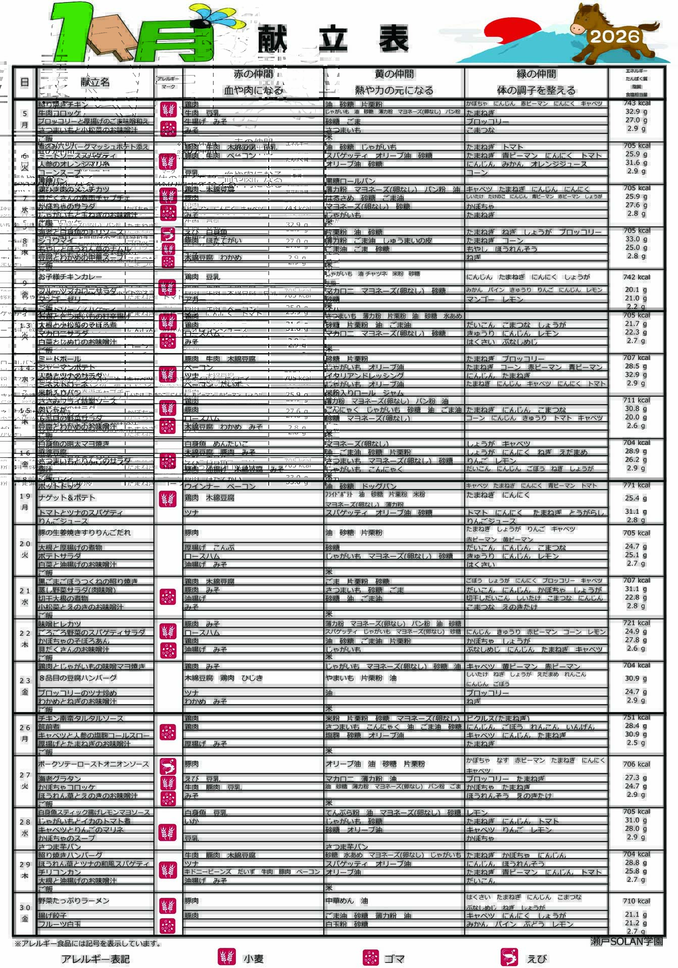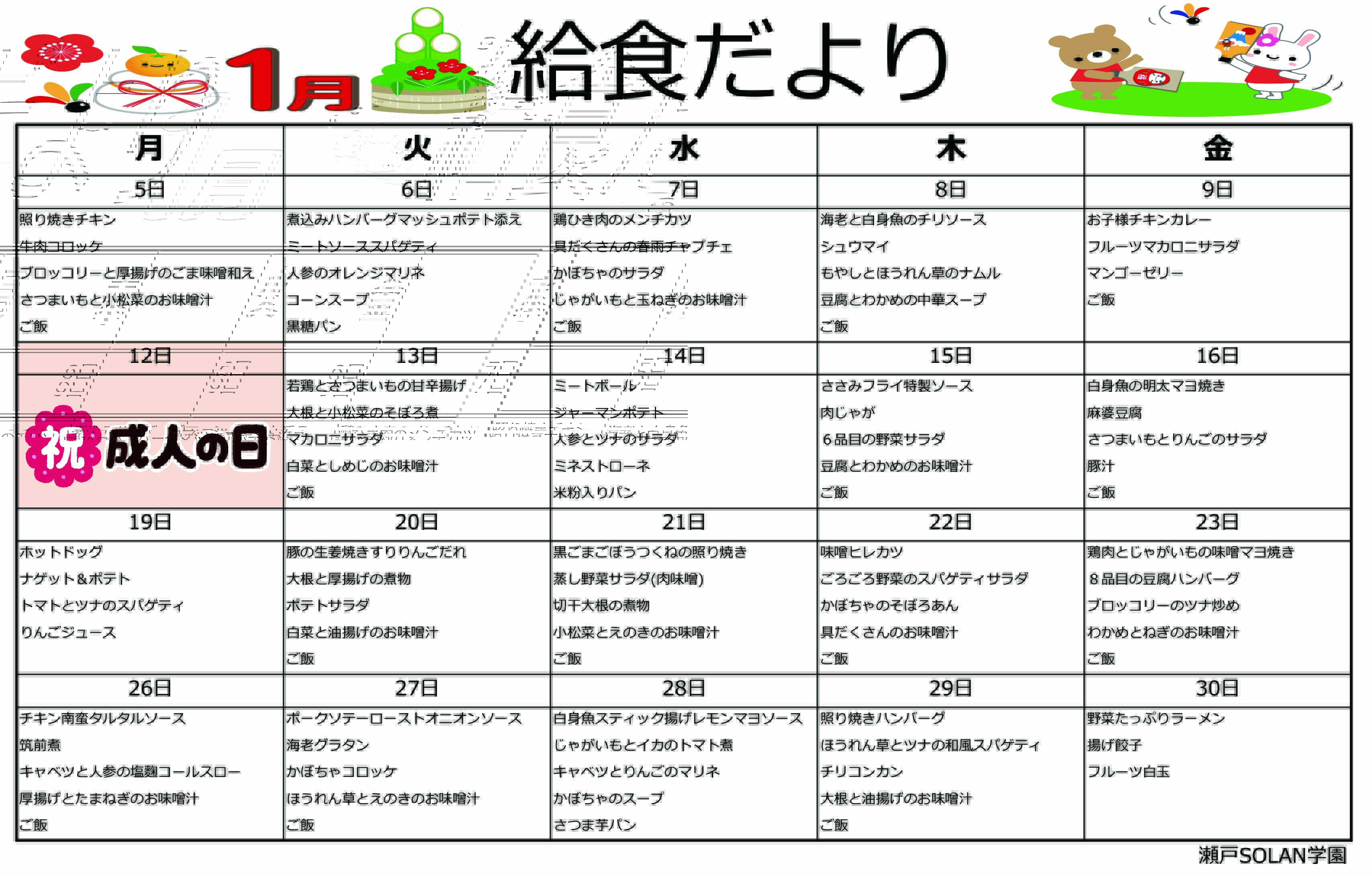 2026年度・1月の献立
