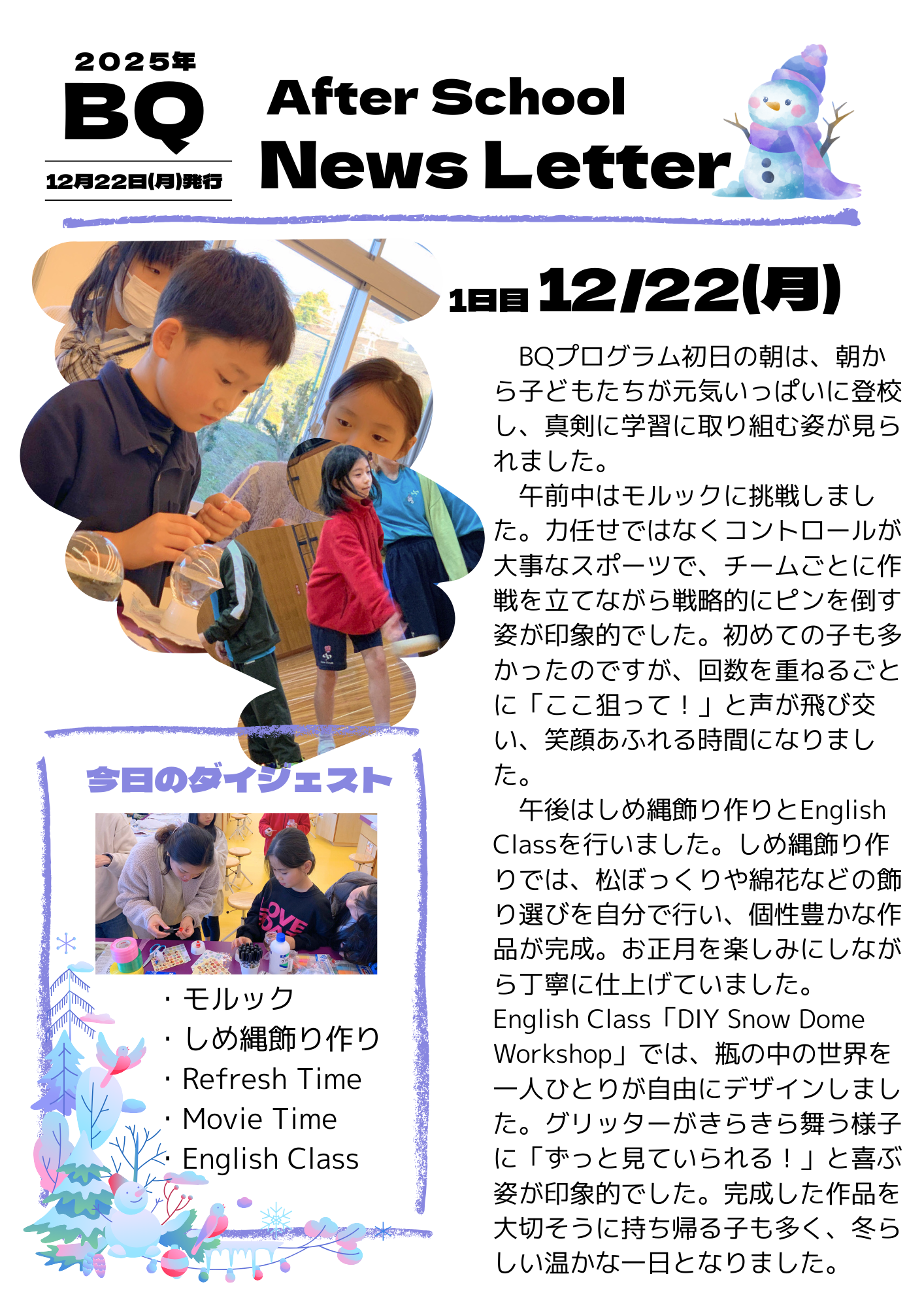 アフタースクール通信2025 12月特別プログラム1日目