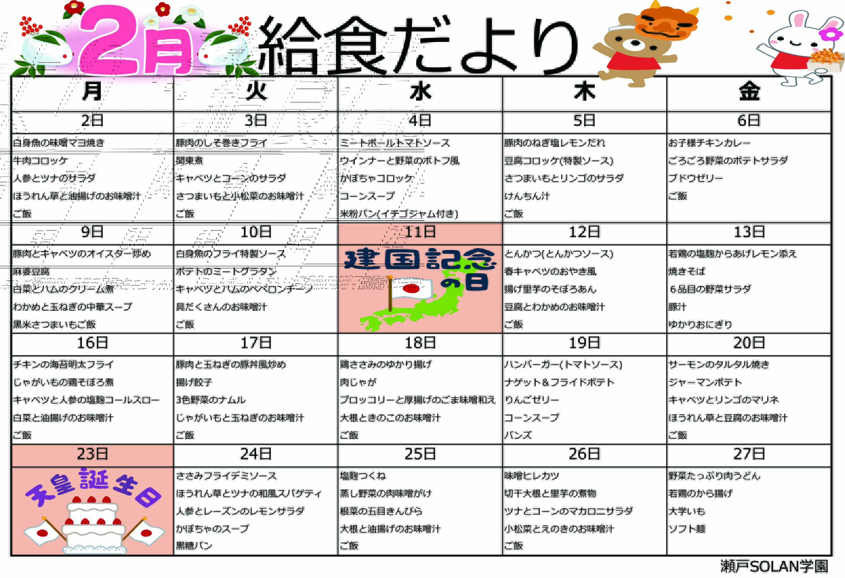 2026年度・2月の献立