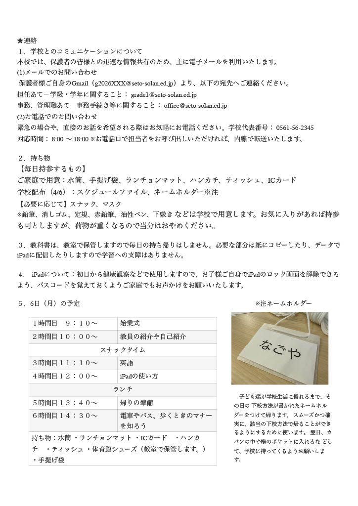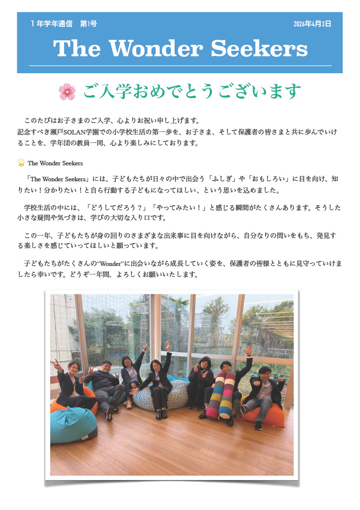 1年生学年通信 The Wonder Seekers No.1 〜ご入学おめでとうございます〜