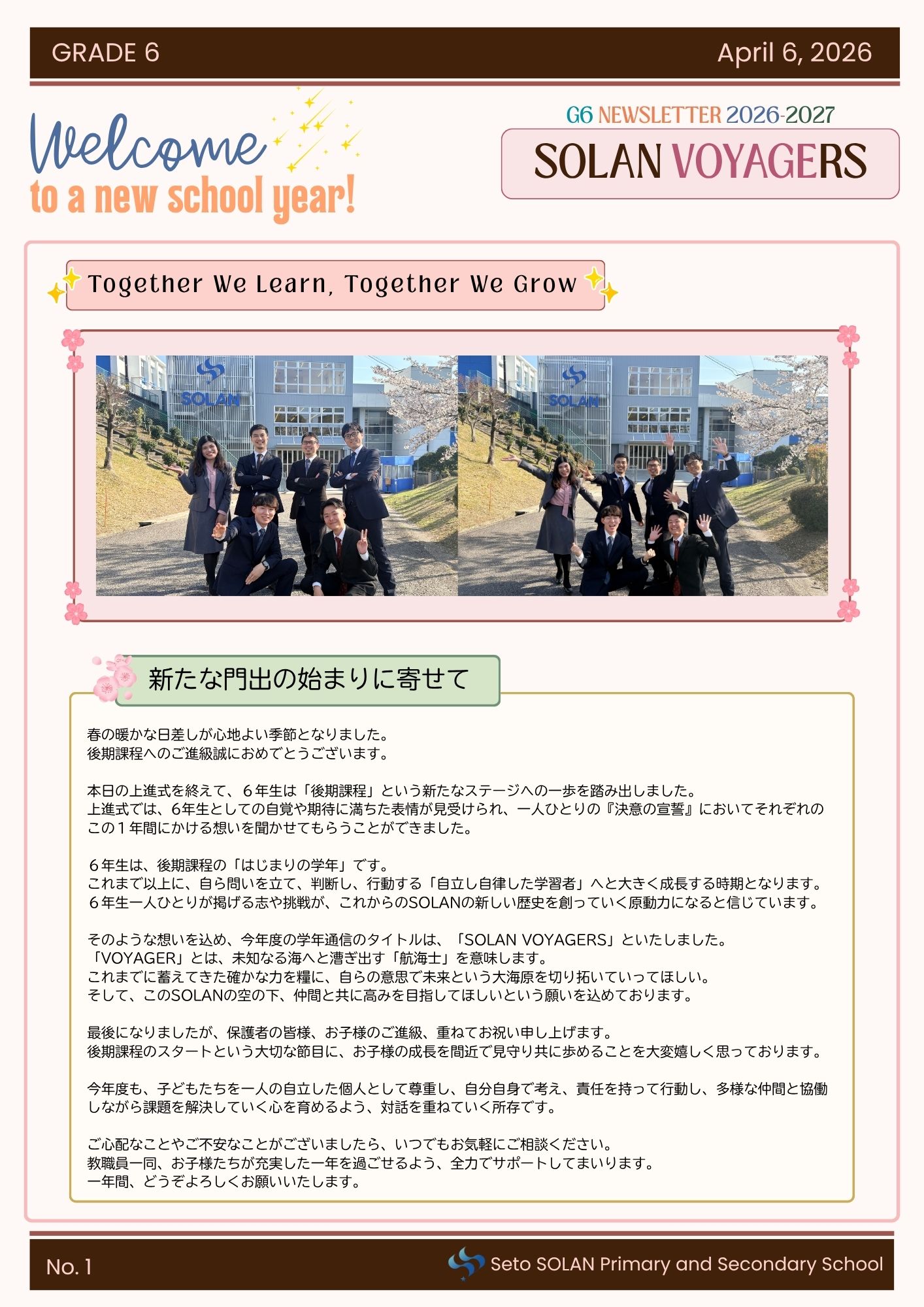 6年生学年通信「SOLAN VOYAGERS」