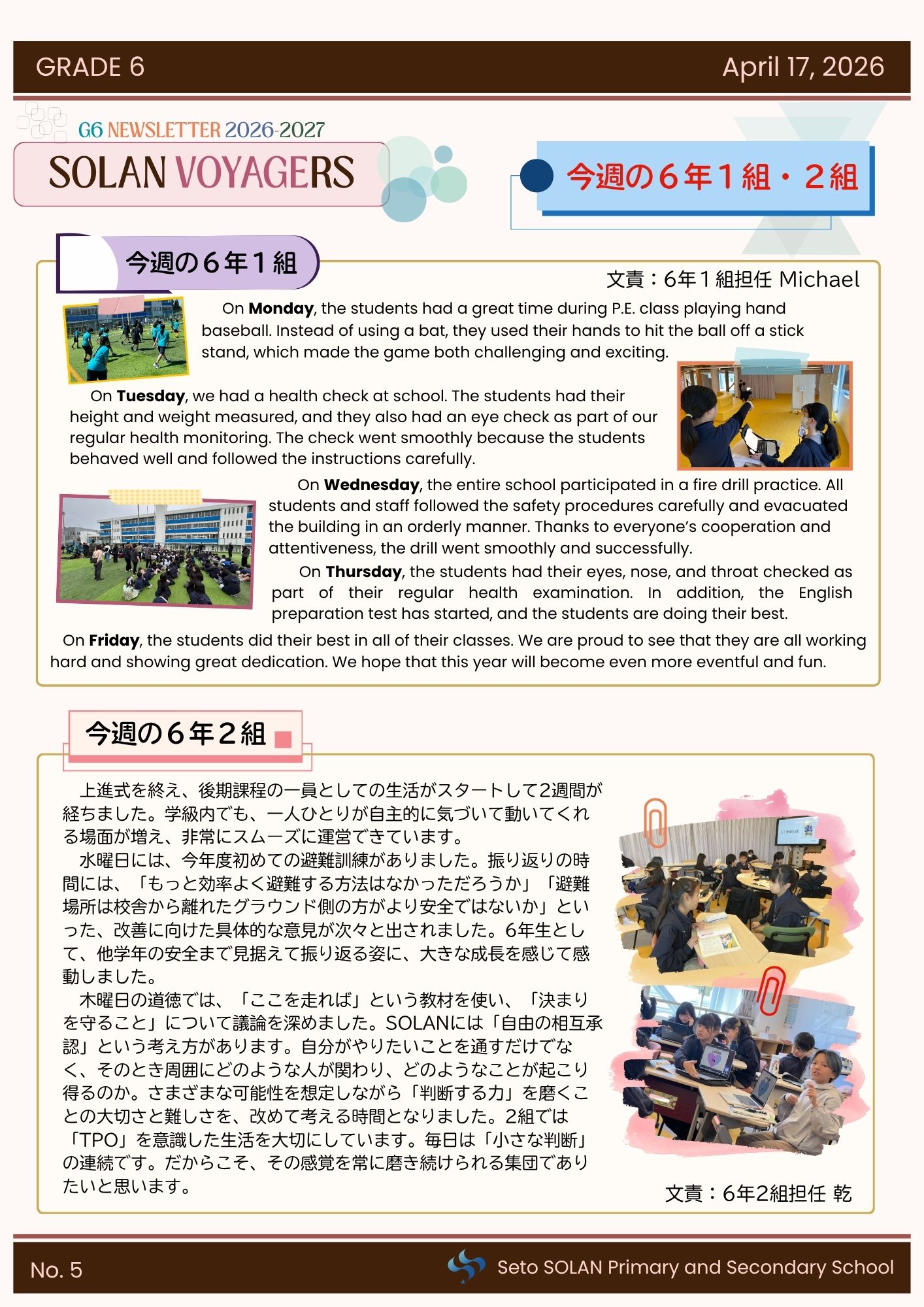 瀬戸SOLAN学園初等中等部の日々の様子をお届けします。